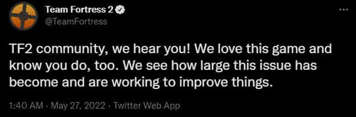 Valve has responded to a campaign from Team Fortress 2 players who want it to fix the game’s bot infestation that has made it almost unplayable in recent years. “TF2 community, we hear you!” the company tweeted from the official Team Fortress 2 Twitter account. “We love this game and know you do, too. We see how large this issue has become and are working to improve things.”