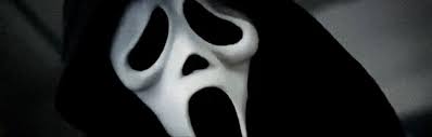 - **Mask**: Ghostface wears a distinctive white mask with exaggerated, ghostly features. The mask has a hollow, almost skull-like face with large, dark, hollow eyes and a gaping, black mouth. The design is inspired by the famous painting "The Scream" by Edvard Munch, giving it a haunting, almost tragic look.