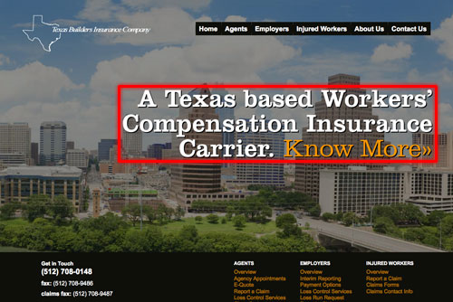 In this example of www.tbic.com, you see how there is a very large amount of “white space” (low proximity) around the major service offering, “A Texas based Workers Compensation Insurance Carrier.” While there is an image in the background, the lack of other visually complicated items has been purposely eliminated to create a strong compelling urge to read the sentence and act on the “Know More”. This is a great example of proximity (or lack thereof).