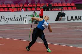 The javelin throw is a track and field event where the javelin, a spear about 2.5 m (8 ft 2 in) in length, is thrown. The javelin thrower gains momentum by running within a predetermined area. Javelin throwing is an event of both the men's decathlon and the women's heptathlon.