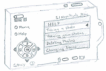 My sketch on the screen shows an example of the Help screen. The option currently selected by the user is highlighted white